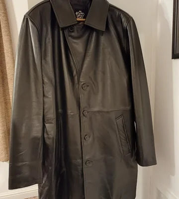 Excellent service; fits true to size with a nice coat length. The leather quality is impressive and feels premium.